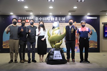 鄭局長隨後也與台中市影視發展基金會執行長林筱淇、影展節目總監張晏榕等人共同揭開紅色布幕揭曉今年短片競賽的獎座,此次影展順應品牌優化以「領路者」理念打造全新獎盃,象徵台中國際動畫競賽已成國際間重要交流競技平台,帶領本土動畫創作者與全球接軌,引領台灣動畫作品在世界發光發熱。