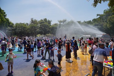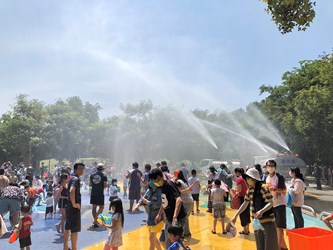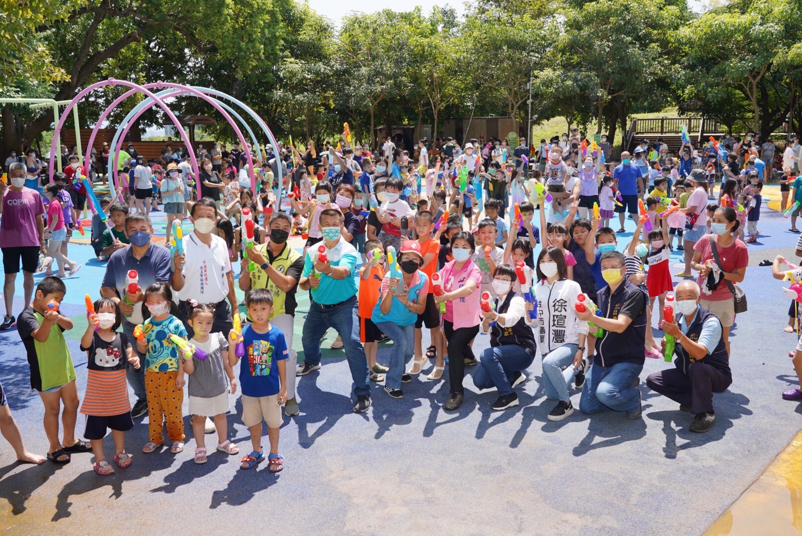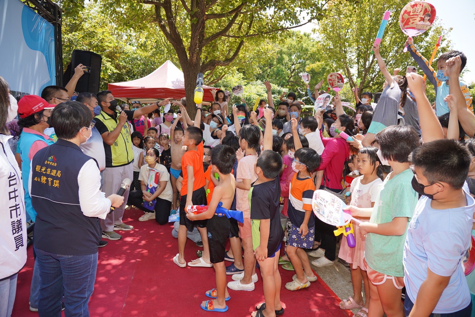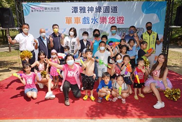 潭雅神綠園道終點「戲水區」近期爆紅、廣受歡迎,台中市政府觀光局今(17)日上午11時舉辦「潭雅神綠園道單車戲水樂悠遊」活動,於現場發放各式水槍並準備3處補水站,吸引大小朋友歡樂共遊,全場焦點更有水車潑水儀式,民眾直呼玩得不亦樂乎,也期望遇水則發,大家都有好運氣,一掃疫情陰霾。