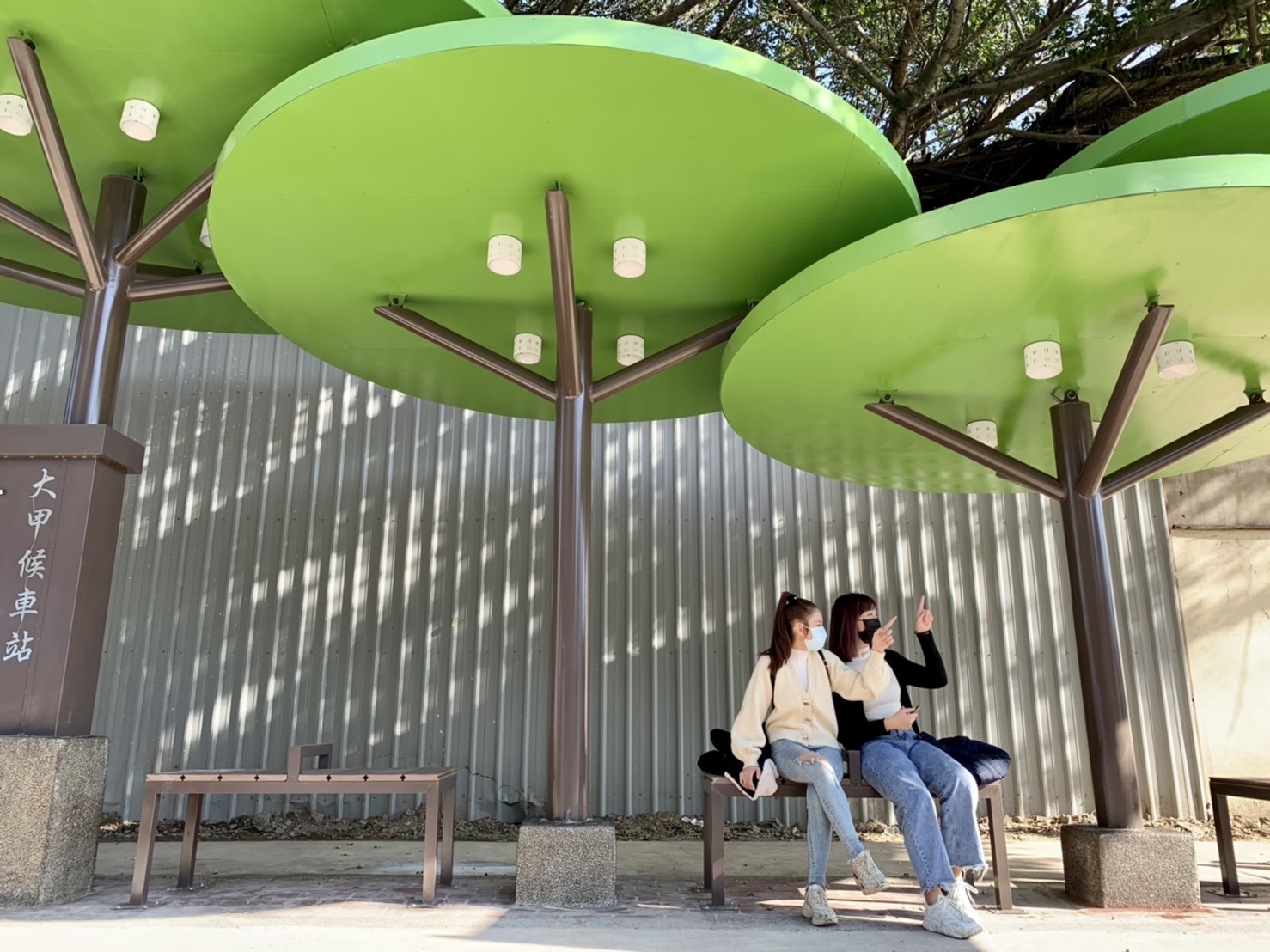 位在大甲火車站前的樹屋候車亭,以榕樹葉為意象打造,提升候車亭環境,融入地方特色