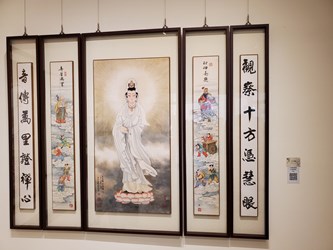 文化局進一步指出,王雙寬最為人熟知的作品《白衣觀音顯靈圖》,遍布全台廟宇贈書區,家屬在籌備展覽過程中,意外找到一件1995年繪製的《白衣觀音顯靈圖》原作,是這次展出作品的一大亮點。此外,歷時3年完成,高180公分、長1200公分的巨幅創作《松鶴千壽圖》,及2016年王雙寬生前遺作《大富貴》,也於這次展覽首次公開亮相,希望透過呈現王雙寬各時期代表作、珍貴手稿,讓民眾完整認識國寶級觀音畫家。