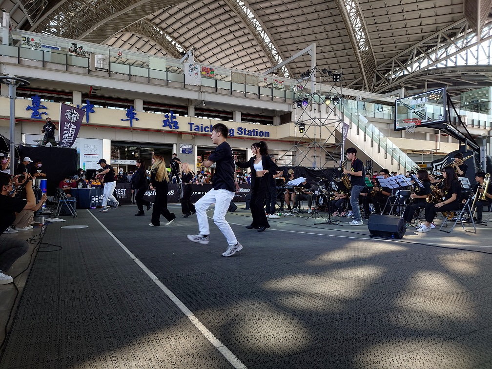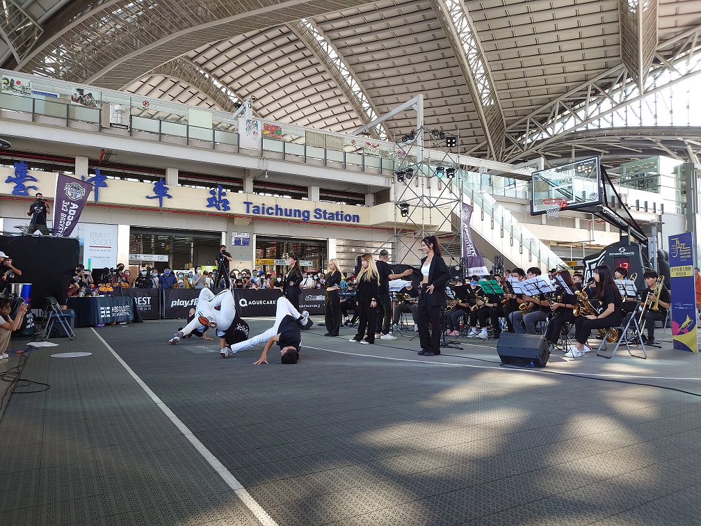 文化局指出,2022台中爵士音樂節以「Jazz unlimited 就是不設限」為主題,規劃一連串系列活動,昨日由台中青少年爵士樂團於台中火車站前,與知名舞蹈團隊「築夢者」攜手合作,在國際籃球總會FIBA認證國際33聯盟賽前快閃登場,帶來2022台中爵士音樂節的主題曲「Fast Lane」,將兩大國際性的籃球賽事與藝文活動跨界結合,贏得現場觀眾熱烈掌聲。