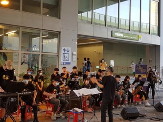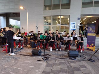 臺中青少年爵士樂團於捷運市府站快閃合影