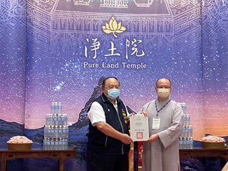 淨土院臺中分院捐贈臺中市政府和民間團體200萬元和200箱素食乾糧