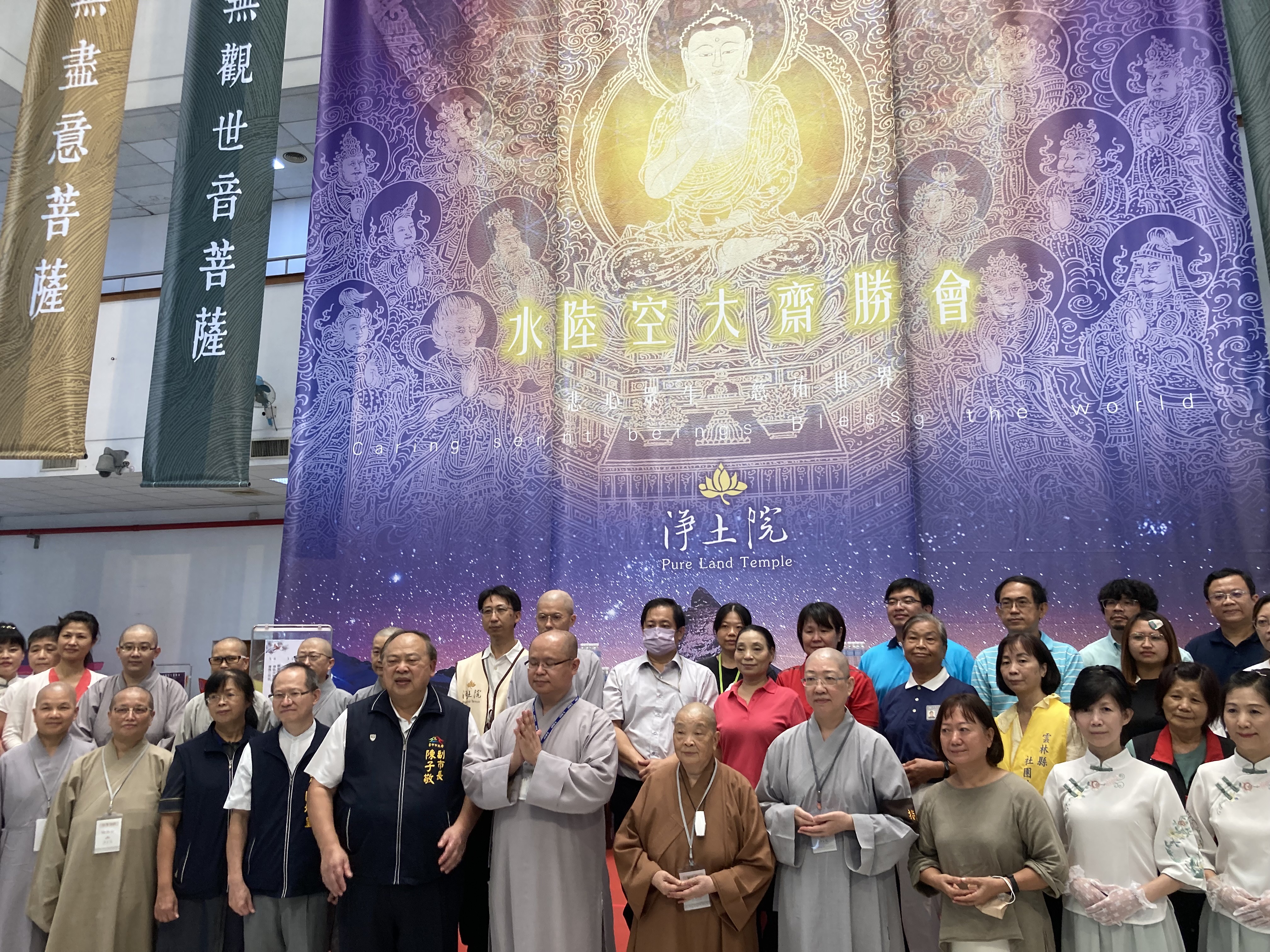 淨土院台中分院今(27)日舉辦水陸空大齋勝會,慷慨解囊,捐贈台中市政府和民間團體200萬元和200箱素食乾糧,協助弱勢家庭、弱勢團體、身障機構和街友。副市長陳子敬出席代表受贈並致贈感謝狀,感謝淨土院台中分院慈悲為懷,無我無私,濟苦救貧。
