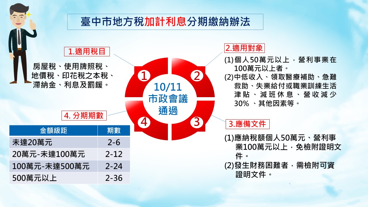 六都首推!台中通過「地方稅加計利息分期繳納辦法」