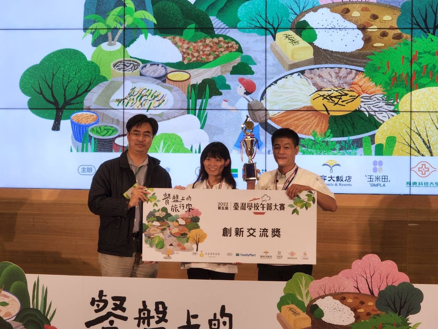榮獲季軍的大智國小營養師陳彥蓉表示,大智廚房已經帶領大智師生們品嚐10多國的特色美食,如墨西哥、英國、新加坡、韓國、日本、巴西、西班牙、義大利等國家,因而讓學生票選心目中最喜歡的異國料理,結果學生心目中最嚮往的異國美食為日本、韓國、義大利及法國居多。因而在不斷集思廣益之下,開發出一套集結日本及法國的雙國料理,設計出法式的巴黎卡菲雞丁、培根奶油白菜、海鮮湯與日式野菇炒飯、胡麻菠菜。她說,不但口味方面無違和,同時將這兩國的特色料理融合,碰撞出新的火花,讓學生用舌尖跨越國界的限制,暢遊於歐亞大陸。