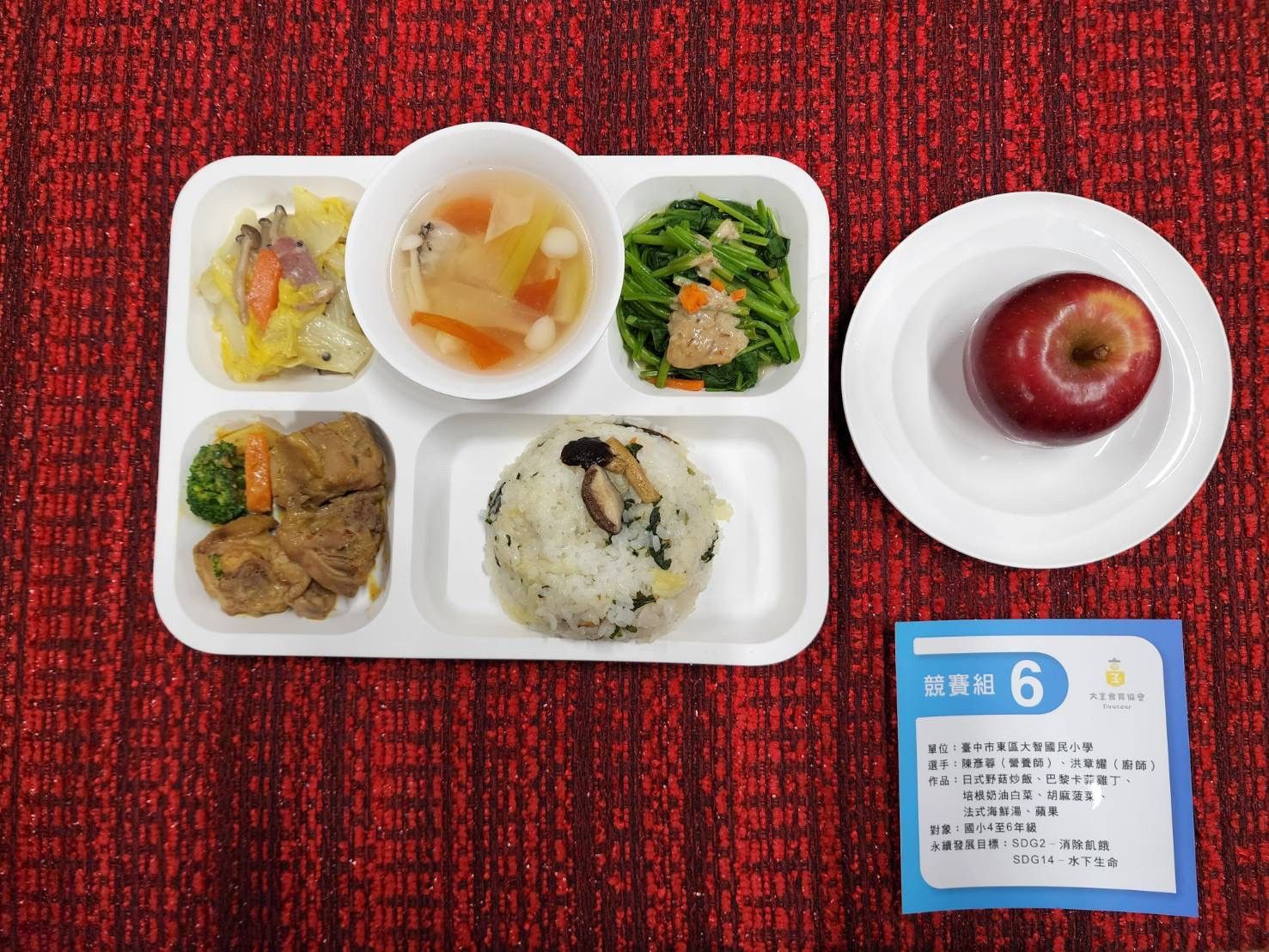 由大享食育協會舉辦的2022第五屆台灣學校午餐大賽,今(16)日於長庚科大桃園校區進行總決賽,繼去年台中市忠信國小、大鵬國小分別拿下上屆賽事冠軍、季軍及全家便利商店商品化獎後,今年台中市計有大智國小、台中國小等兩校挺進總決賽,歷經一整日的賽事後,其中大智國小勇奪季軍及創新交流獎雙項殊榮,另台中國小也拿下食育教學卓越獎,再次展現出台中市學校廚房工作人員的優秀廚藝。