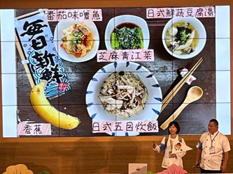 榮獲食育教學卓越獎的台中國小營養師詹幸嚴則指出,此次的日式風味餐包含有日式五木炊飯、番茄味噌魚、芝麻青江菜、日式鮮蔬豆腐湯及香蕉。炊飯在日本為一道常見的家庭料理,從前稻米收割量不穩定時,人民為了節省米的使用量,因此將食材放進入米中一起烹煮,經過不斷地改良演變成現代白米加入牛蒡、菇類及各式在地與當季蔬菜和肉類一起烹煮,不用太多調味保留食材最新鮮味道。
