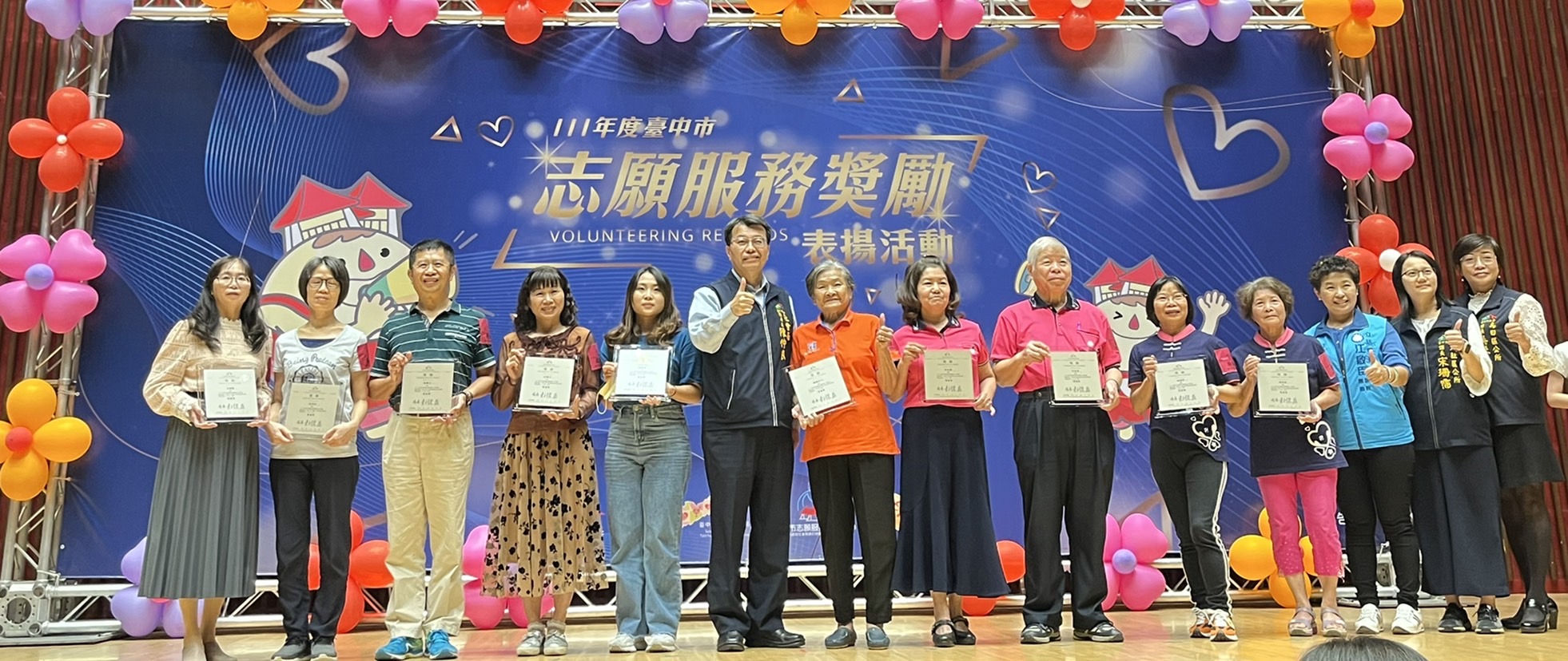 台中市政府社會局今(19)日舉辦社會福利類志願服務績優人員獎勵表揚活動,表揚966名志工、10組積極推動高齡志工服務方案的團隊及12組獲得評鑑甲等以上的志願服務團隊。社會局副局長陳仲良表示,這幾年雖受疫情影響,但志願服務未曾停止,也有許多志工投入防疫工作,感謝他們無私奉獻。