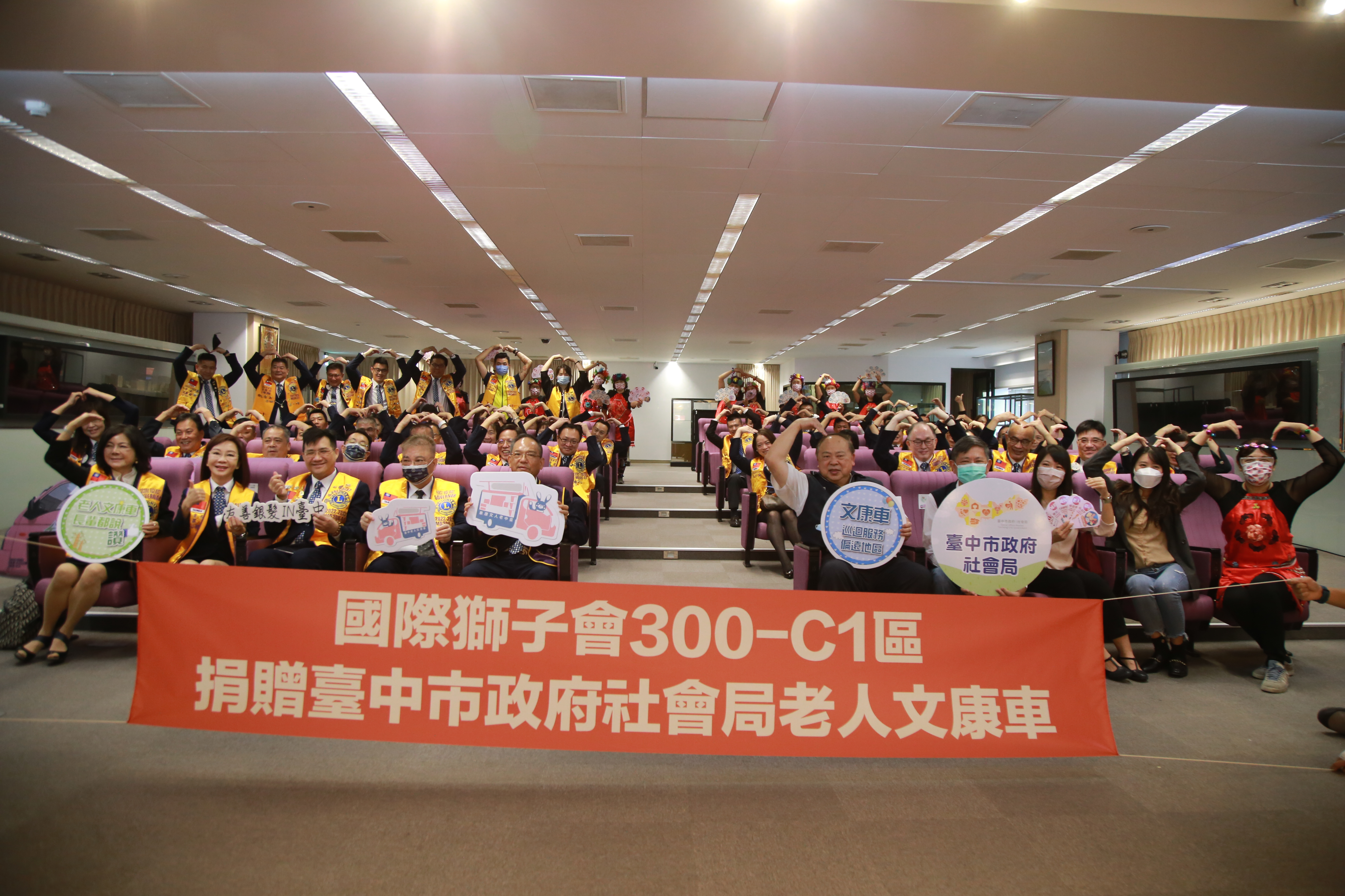 國際獅子會300-C1區長期關心社會福利,響應公益,捐贈台中市政府2輛老人文康休閒巡迴車,今(20)日在台灣大道市政大樓9樓台中廳舉辦捐贈儀式,副市長陳子敬表示,目前台中市有10輛老人文康車,數量全國第一、六都第一,國際獅子會300-C1區長期默默行善,讓弱勢族群維持生活水平,謝謝各位人間菩薩愛心善舉。