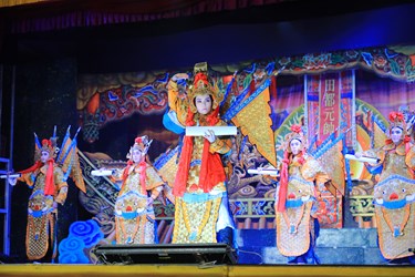 盧市長並指出,台中市政府非常支持藝文活動,隨著疫情逐漸解封,安排一系列戲劇活動,讓深受疫情影響的藝文團體有演出機會,也讓市民走出家門欣賞藝文表演。今晚特別由明華園當家小生孫翠鳳本人領銜,也是孫老師第一次演出反派的戲碼,以這場大戲獻給北屯鄉親,祝福所有民眾有個美好的夜晚。