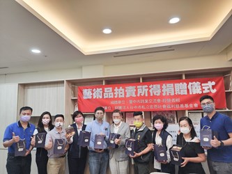 台中市工商發展投資策進會和跨業交流會經營者組今(26)日在台中市宏恩基金會辦理藝術品拍賣會所得捐贈儀式,由宏恩基金會董事長吳子鈞醫生代表受贈。工策會總幹事黃于珊表示,疫情期間慈善團體募捐不易,感謝台中企業重視社會公益,熱絡參與慈善藝術品競拍,並將全數所得10萬8,600元整盡數捐贈予宏恩基金會,回饋社會,創造善的循環。