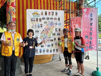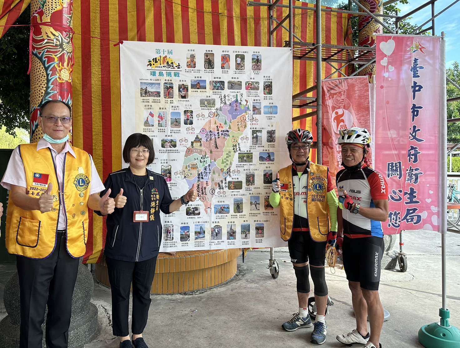 台灣抗癌協會第10屆「不倒騎士 騎出生命」單車環台圓夢之旅,抗癌勇士今(7)日抵達台中市政府衛生局附近的豐原福德宮,衛生局團隊熱情迎接參與環台的各地抗癌鬥士們。衛生局表示,不倒騎士(癌友)們揮別罹癌陰霾,走出戶外,完成自行車環台挑戰,證明快樂積極的心是對抗病魔的最佳解藥,盼透過此次活動,提醒市民規律運動及定期癌症篩檢的重要性。
