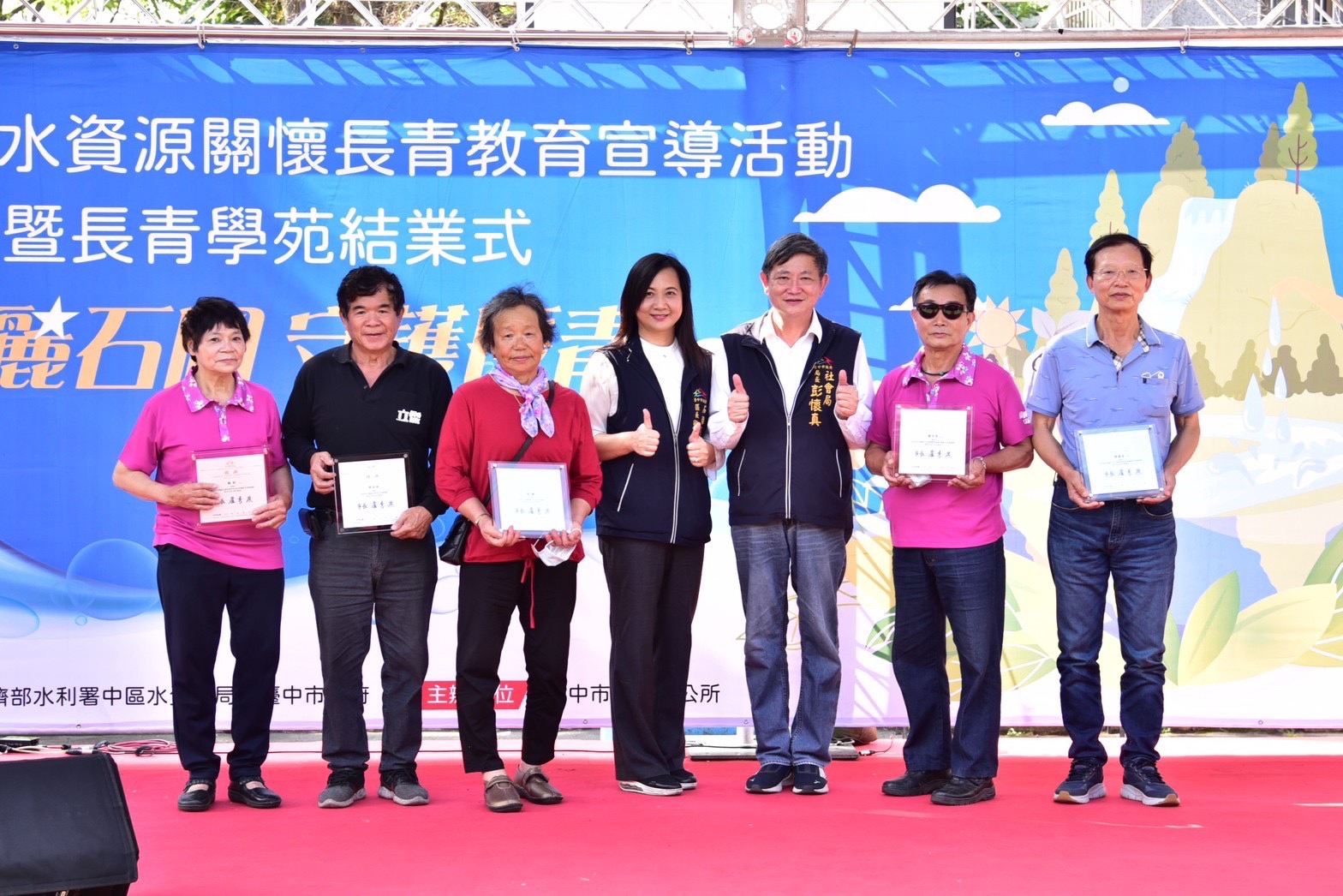 台中市石岡區長青學苑以健康樂活,融合在地客家生活元素與長者需求設計課程,今(11)日於萬興宮前廣場舉辦結業式,為20班、594名學員慶賀結業,其中學員高齡90歲以上長輩有7位,最年長的97歲羅曾奶奶老當益壯,學習認真不輸年輕人,社會局長彭懷真出席表示,肯定長輩勤學習的熱誠,羅曾奶奶是名副其實的長青模範生,希望大家都能效法活到老、學到老精神。