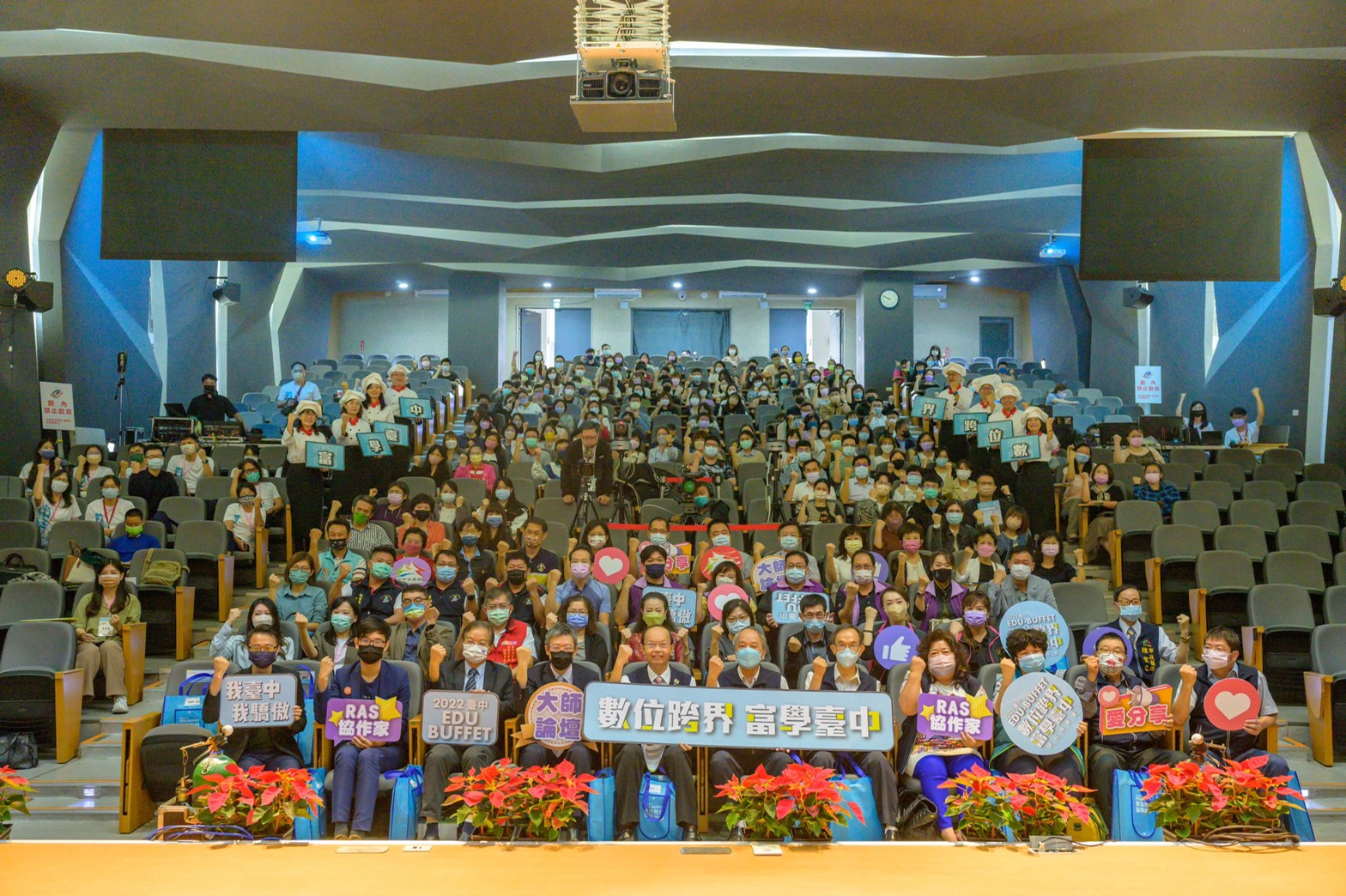 2022台中EDU-BUFFET課程博覽會今(12)日於惠文高中歌劇院開幕,共開設2場實體論壇及41堂線上課程,實體論壇同步線上直播,歡迎全國教師自由「點餐」,吸引全國452位教師、實習教師及家長參與,更不乏來自澎湖、屏東等13縣市教師參與。台中市政府教育局長楊振昇出席表示,因應疫情線上教學需求,今年以「數位跨界 富學台中」為主題,採實體論壇、線上直播同步進行,「課程饗宴外送到家!」