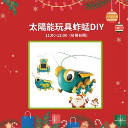 「捷伴聖誕園遊會DIY區」有「太陽能玩具蚱蜢」、「綠色多肉植物」、「耶誕小麋鹿」、「綠色植物相框」4場免費手作DIY,材料以環保、永續、綠色生活為概念,如「綠色植物相框」使用文心森林公園自然掉落的樹葉,「耶誕小麋鹿」以軟木塞做為麋鹿身體,讓參與的大小朋友在體驗過程中除了感到好玩,也能激發對於環保材料的創作靈感;4場手作DIY將於今日下午3時開放線上報名,名額有限,敬請把握。