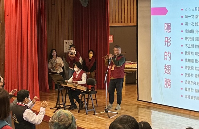 昨日文資志工表揚授證典禮由山城支隊的志工伙伴帶來古箏、曲笛表演及帶動唱熱鬧開場,現場逾百位志工到場參與,市議員張彥彤、江肇國、黃守達也派代表共襄盛舉。(12/18*16)*文化局