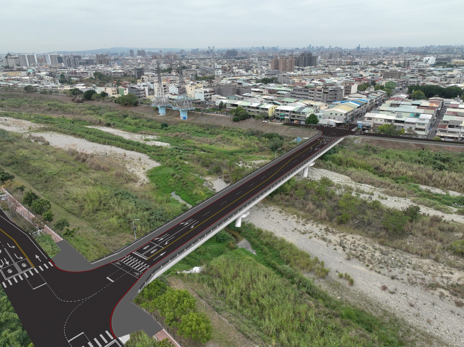 1.美群橋改建,跨距配置54m+68m+54m連續鋼板梁橋,總長度176m,橋面總寬16.5m,橋面配置3車道+自行車與行人共用道。